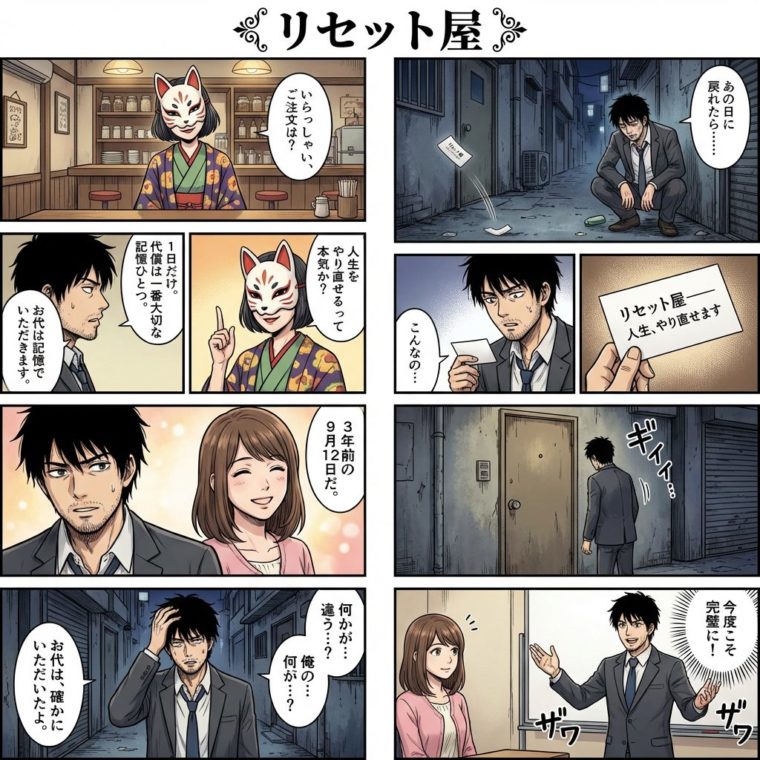 タイトル:「リセット屋」 ジャンル:ダークファンタジー × コメディ 舞台設定 繁華街の裏路地に、看板もない古びた扉だけがある。その扉の向こうには「リセット屋」と... ゲーム攻略