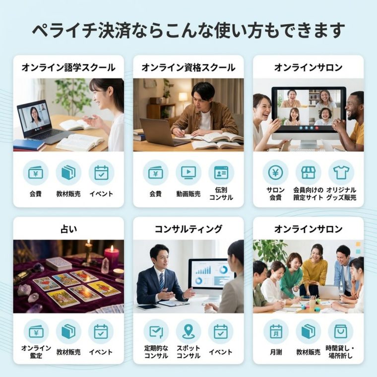 サブスク決済を使えば、月額制のサービスや会員制コミュニティの運営も可能です。事前決済を使えば、イベントや体験レッスンの参加費を事前に回収できます。様々なビジネスモデルに対応できる柔軟性がペライチ決済の強みです。