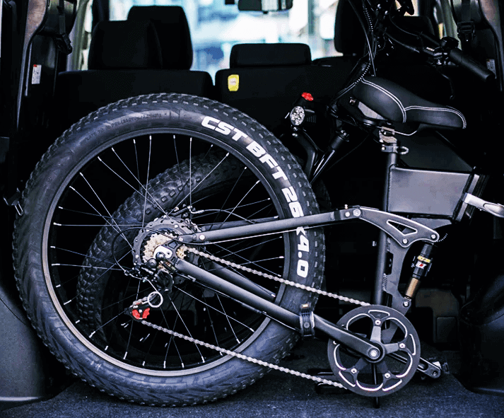 車のトランクに折りたたんで積み込めば、旅先での移動手段になります。