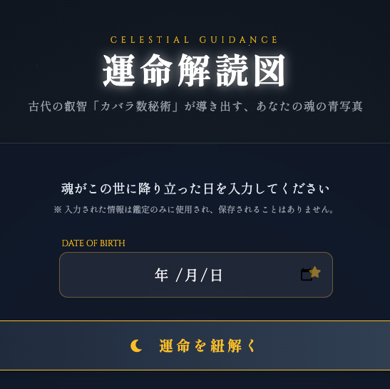 本格的な「カバラ数秘術」と「西洋占星術」で、あなたの運勢、恋愛運、性格的本質を無料で鑑定します。生年月日から導き出すソウルナンバー診断により、運命の人の特徴... -
