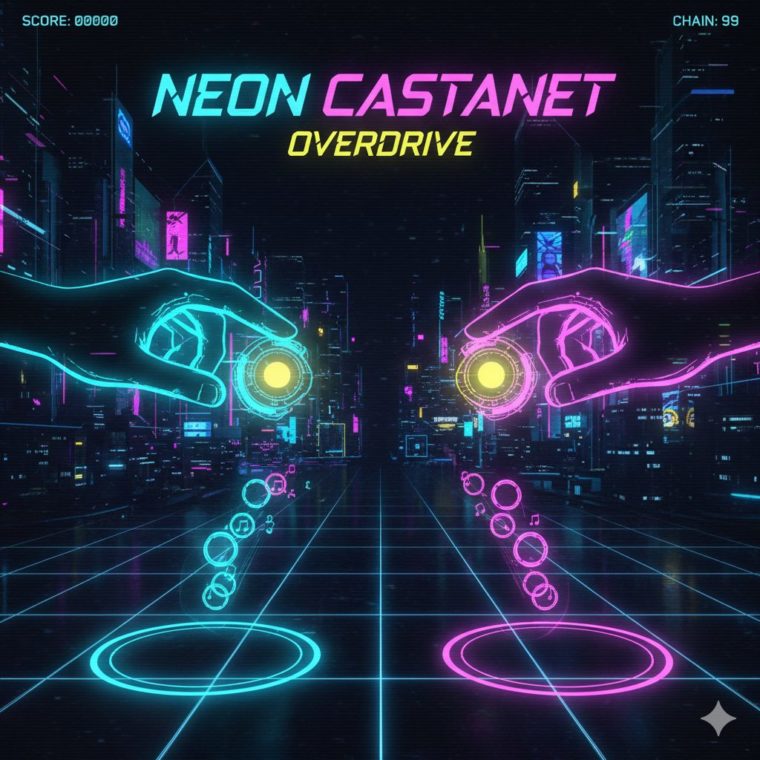 指先で奏でる、光と音のサイバーパンク・シンフォニー ネオンカスタネットのゲーム説明 『ネオンカスタネット: OVERDRIVE』は、インストール不要、ブラウザだけで動作す... -