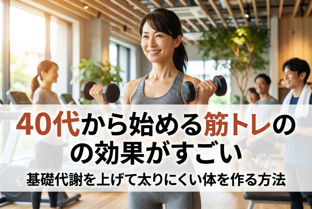 この記事では、40代から筋トレを始めることで得られる効果を詳しく解説します。基礎代謝を上げて太りにくい体を作るための具体的な方法もお伝えします。「これだけ読めば十分」と感じていただける内容を目指しました。