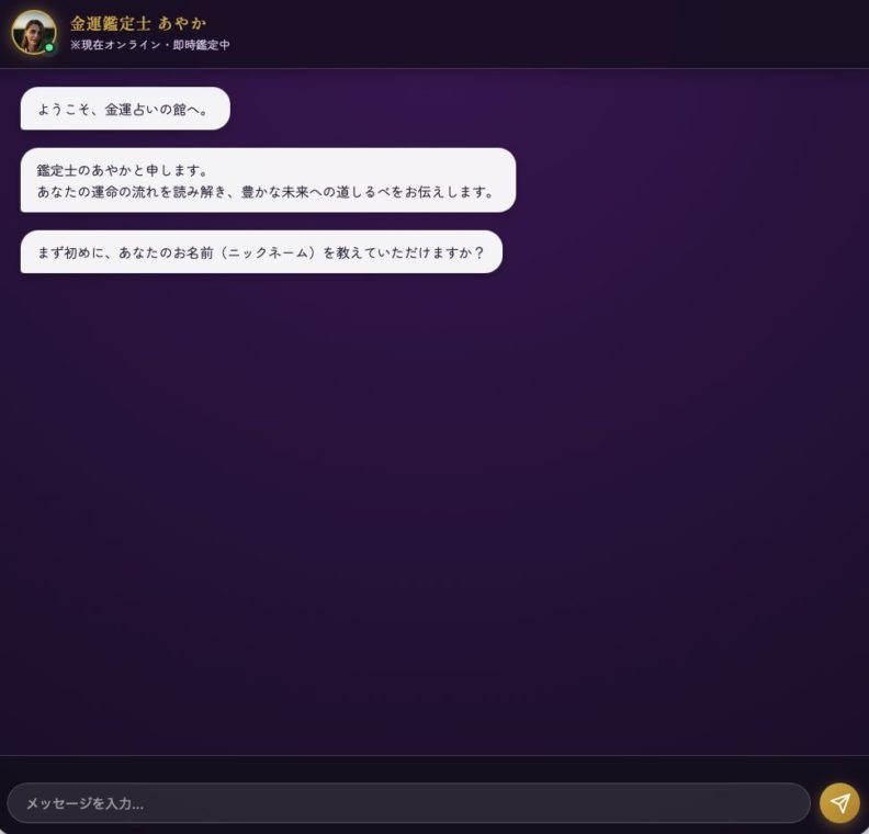 【金運専門】神秘のチャット占い - 鑑定士あやか 「その金運、実は眠っていませんか? あなたの財布が目覚める『黄金の予言』を今すぐ受け取る。」 まるで実在の占い師... -