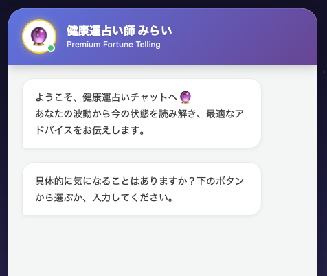 星空の健康運占いチャット 「今日のあなたの体調、星はどう告げている?」まるで夜空に浮かぶサロンのような、神秘的で上質な占い体験をあなたに。 『健康運占いチャッ... -