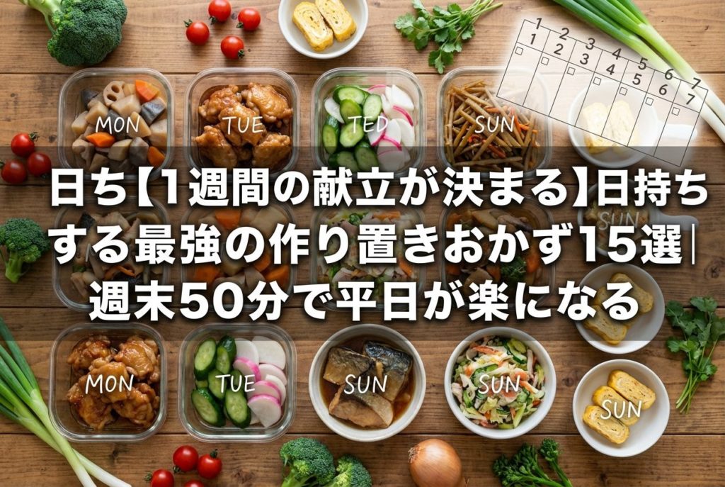 毎日の料理に疲れていませんか。仕事や家事で忙しい平日、「今日の夕飯は何にしよう」と頭を悩ませる方も多いでしょう。そんなあなたに朗報です。週末のわずか50分で、1... -