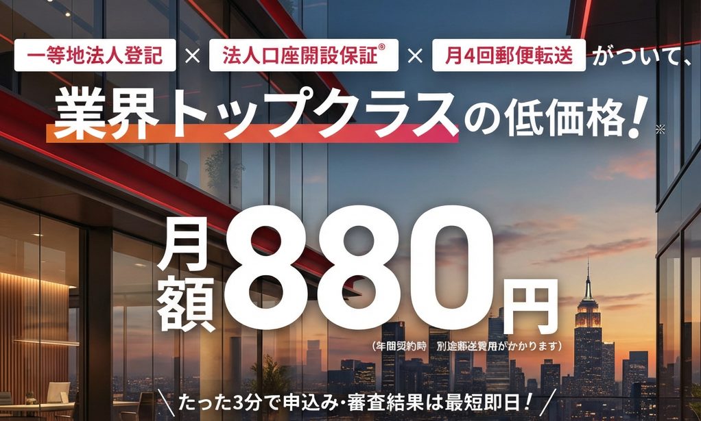 「起業したいけど、オフィスを借りる費用が負担になる」「自宅住所を公開せずにビジネスを始めたい」このようなお悩みを抱えていませんか。 月額880円+郵送費用で法人登... -
