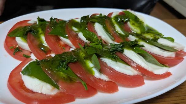 トマト、モッツァレラチーズ、バジルの定番カプレーゼを華やかにアレンジした一品です。