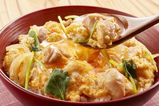 どんぶりに温かいご飯を盛り、親子丼の具をご飯の上に優しくのせます。