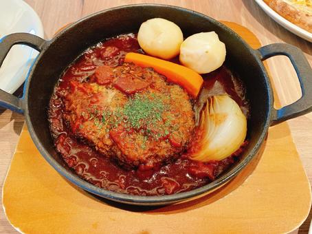 日本の煮込みハンバーグ デミグラスソースやトマトソースが主流です。ご飯と合わせるのが日本流です。