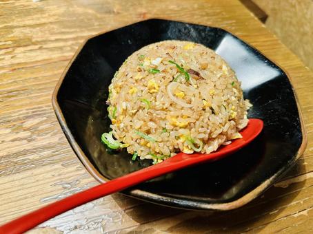 炒める順序は、油→卵→ご飯→調味料→具材の順番が基本です。