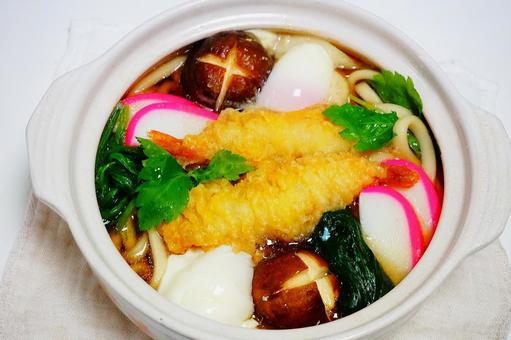 鍋焼きうどんは、土鍋で作って土鍋のまま提供する料理です。
