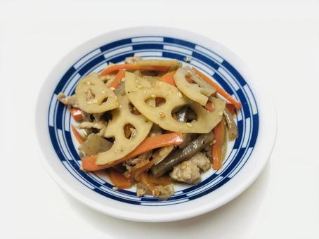 - 豚肉とれんこんの炒め煮(ピリ辛味)