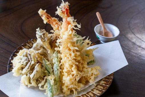 天ぷらは、立体的に盛ることで高級感が出ます。