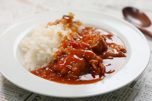 カレーの量は、ご飯に対して適切なバランスにします。カレーが多すぎると水っぽく見え、少なすぎると物足りない印象になります。