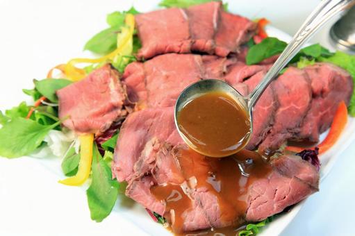 ローストビーフサラダは、ヘルシーな一品です。ベビーリーフの上にローストビーフを並べ、オリーブオイルとバルサミコ酢で作ったドレッシングをかけます。
