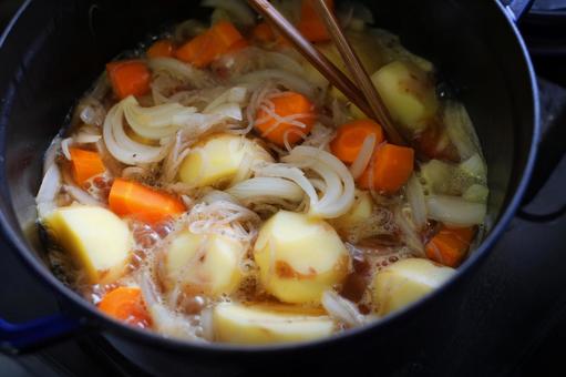 火加減は沸騰後に弱火から中火に落とし、コトコト煮込みます。