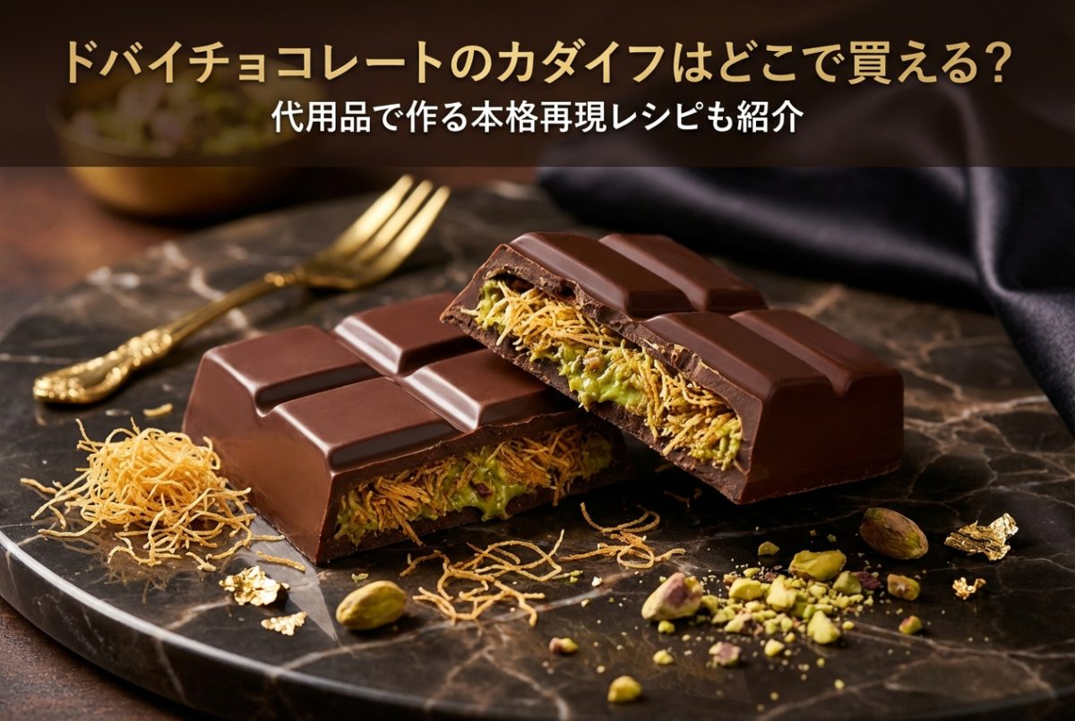 この記事では、ドバイチョコレートのカダイフをどこで買えるかを店舗・通販別に徹底解説します。さらに、カダイフがなくても本格的な味を再現できる代用品レシピも詳しく紹介します。買い方から作り方まで、この1記事で完結します。