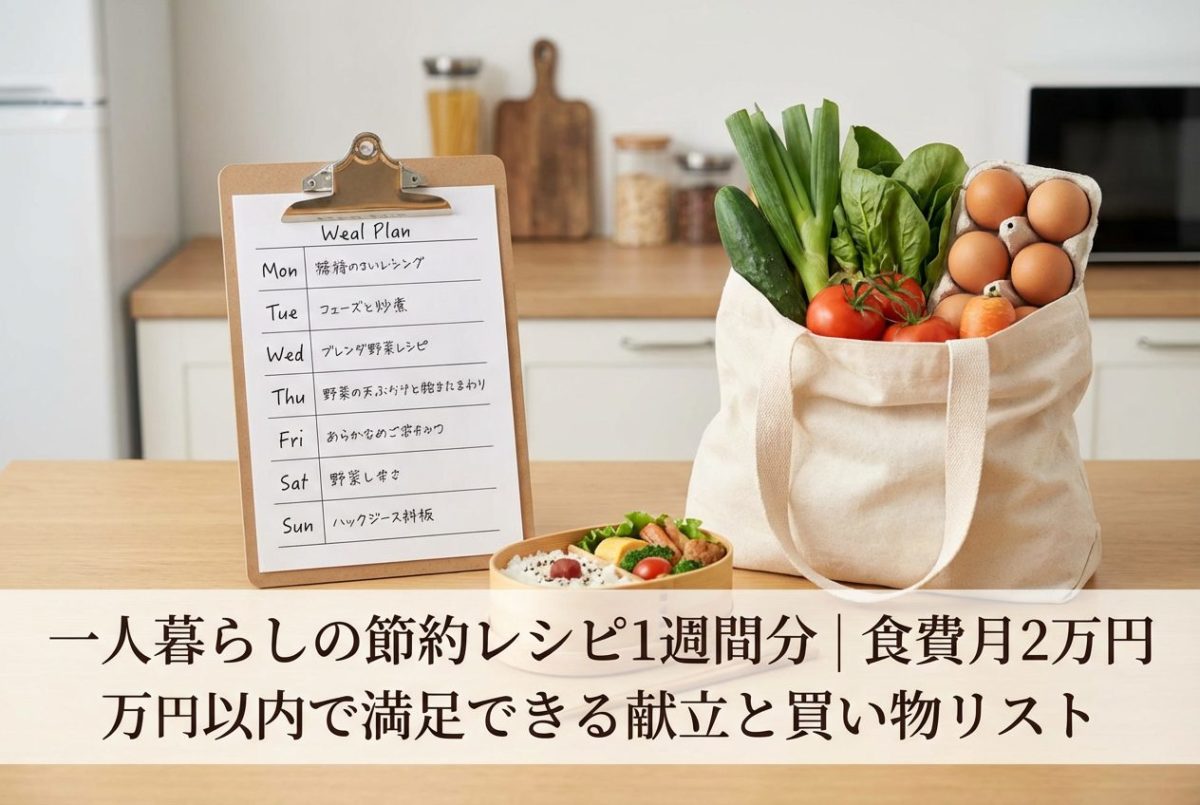 この記事では、一人暮らしの節約レシピ1週間分を中心に、食費月2万円以内を実現するための買い物リスト・献立・レシピ・節約戦略を詳しく解説しました。