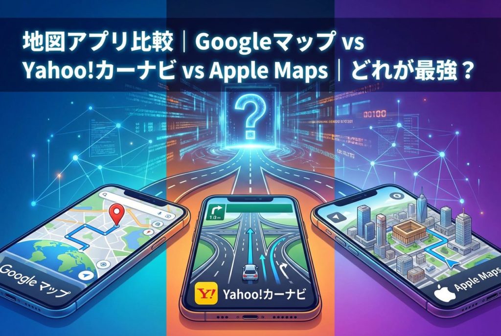 【2026年最新版】地図アプリ比較|Googleマップ vs Yahoo!カーナビ vs Apple Maps|どれが最強?