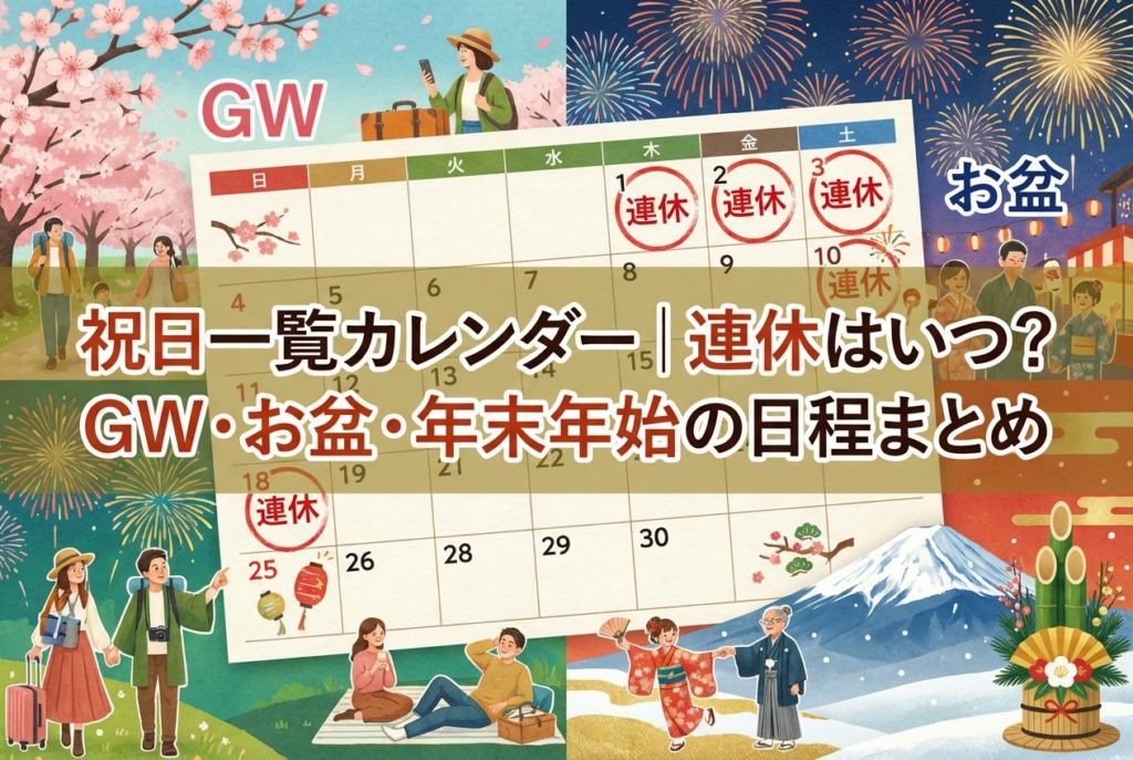 【2026年】祝日一覧カレンダー|連休はいつ?GW・お盆・年末年始の日程まとめ